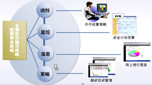 通过集团资金集中管理的实施与应用,企业集团将可以实现: 资金事前计划、事中控制; 资金管理与会计核算的一体化处理; 金融业务的处理; 集团远程联网应用,集中控制结算; 实现银企直连,加速资金周转,整体提高集团资金效率。