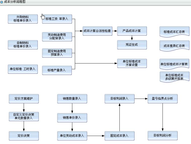 进行成本定额及分配标准管理,提供费用归集、费用分配、成本核算等功能;提供成本分析、成本控制、成本考核、成本预测、成本决策、本量利分析等成本管理工具;支持作业成本管理、日成本管理等高端复杂的成本管理业务。