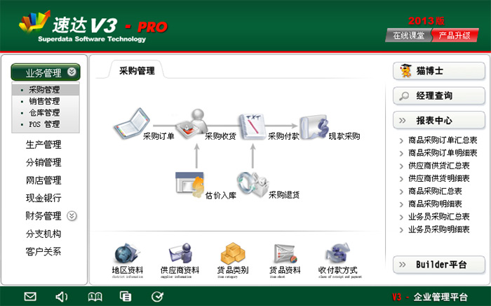 《速达V3-PRO-商业版》作为速达V系列企业管理平台,特别适合中小企业使用。平台将企业进销存管理、POS管理、财务管理、客户关系管理集成于一体并科学地融入Builder-Ⅲ二次研发工具,真正实现了产品平台化,满足企业管理的个性化需求,全面提升企业管理的能力。
