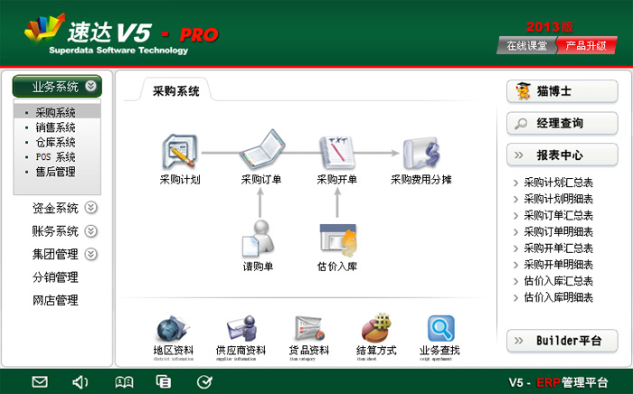 《速达V5-PRO-商业版》作为ERP管理平台,特别适合中型企业使用。平台全面实现供应链业务管理、资金管理、财务管理、客户关系管理、异地分销、远程配送、多机构集团化管理。平台通过强化业务流程控制,多级审批管理,有效地帮助企业实现业务管理、财务管理的制度化。平台科学地融入Builder-Ⅲ二次研发工具,真正实现了产品平台化,满足企业管理个性化需求,全面提升企业管理的能力。