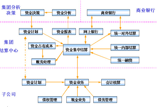 通过集团资金集中管理的实施与应用,企业集团将可以实现: 资金事前计划、事中控制; 资金管理与会计核算的一体化处理; 金融业务的处理; 集团远程联网应用,集中控制结算; 实现银企直连,加速资金周转,整体提高集团资金效率。