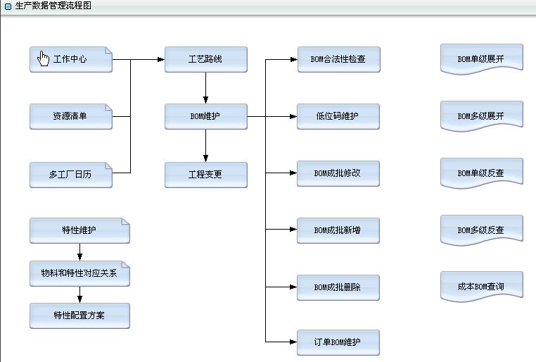 通过BOM的有效期管理、工程变更管理、工艺路线的管理、结合工序替代处理、成本模拟、物料替代和PDM接口功能,帮助企业建立完整生产基础数据管理规范。