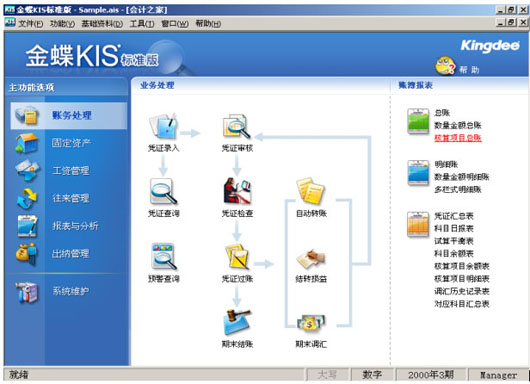 金蝶KIS标准版突出加强了核算项目、往来管理、出纳管理、现金流量、财务分析等企业财务活动中关键点的功能。能更好地支持客户深度财务管理和控制需求。